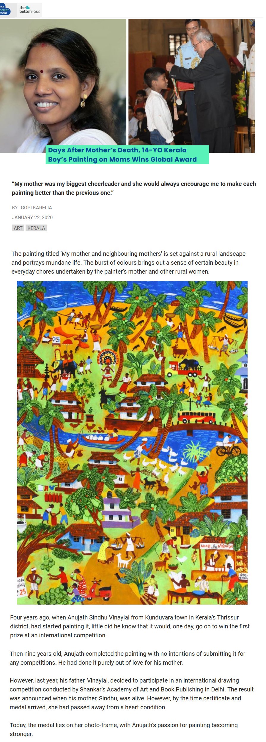 Days After Mother’s Death, 14-YO Kerala Boy’s Painting on Moms Wins Global Award