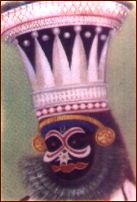 is Hanuman, the monkey God. The intricate patterns drawn on the face