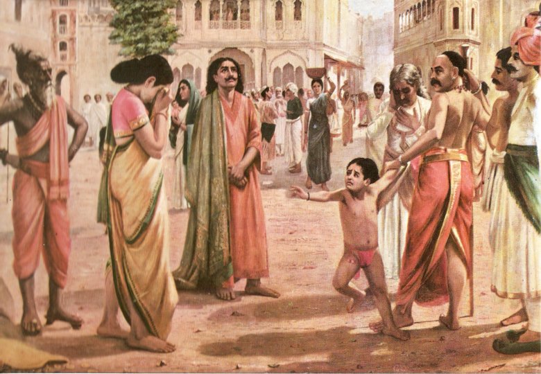 King Harichandra in his vow to speak only the truth losing his son