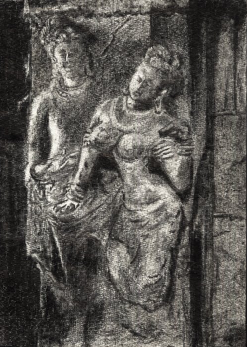 Sketch of a sculpture in Patadakal - Sketch by Suamthi