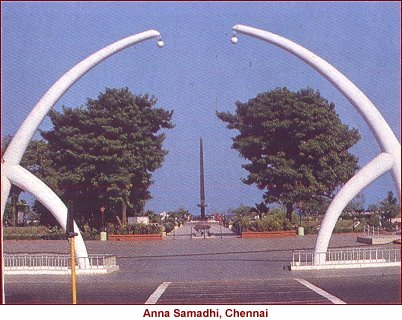 the Madras University on the sands of Marina lies the grand memorial of
