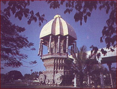 the temple chariot at Tiruvarur. A huge statue of the saint poet around